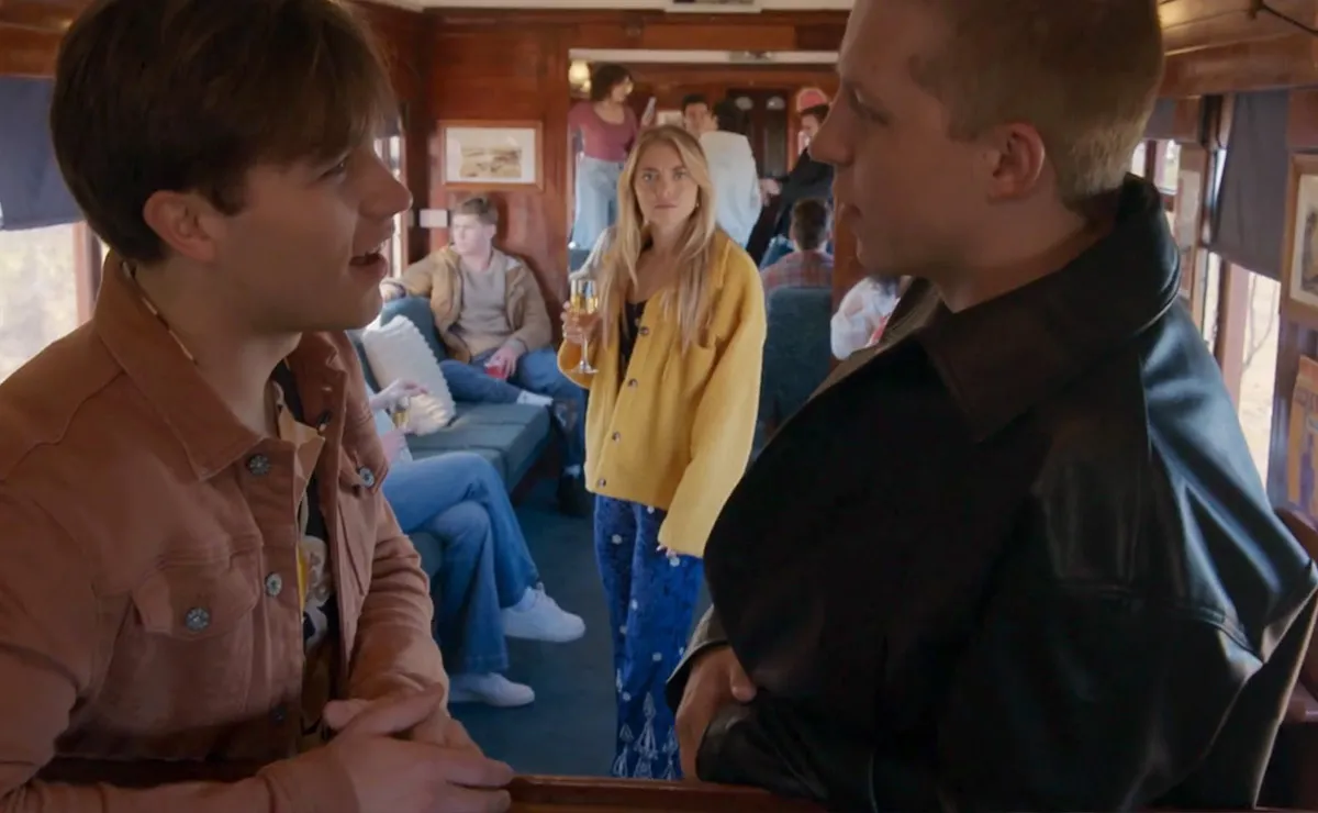 On the train were the members of Remi’s (Adam Rowland) Back on Track record label – Remi himself, hype man Sonny (Ryan Bown), manager Justin (James Stewart), and their new signing Eddie (Stephen Masden), who was due to play his first set at the renowned music festival.