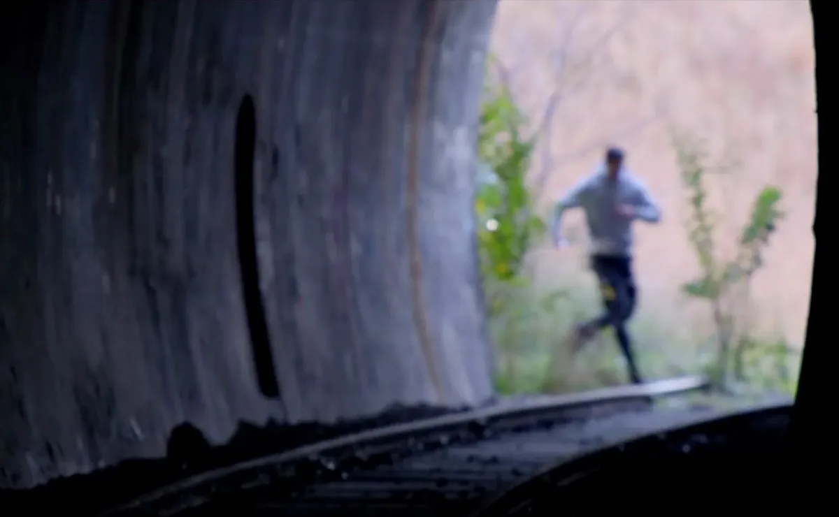 Shortly afterwards, the train headed towards a tunnel, where a small group of teens were spraying graffiti. Spotting the train, they fled, leaving their bicycles sprawled across the track.